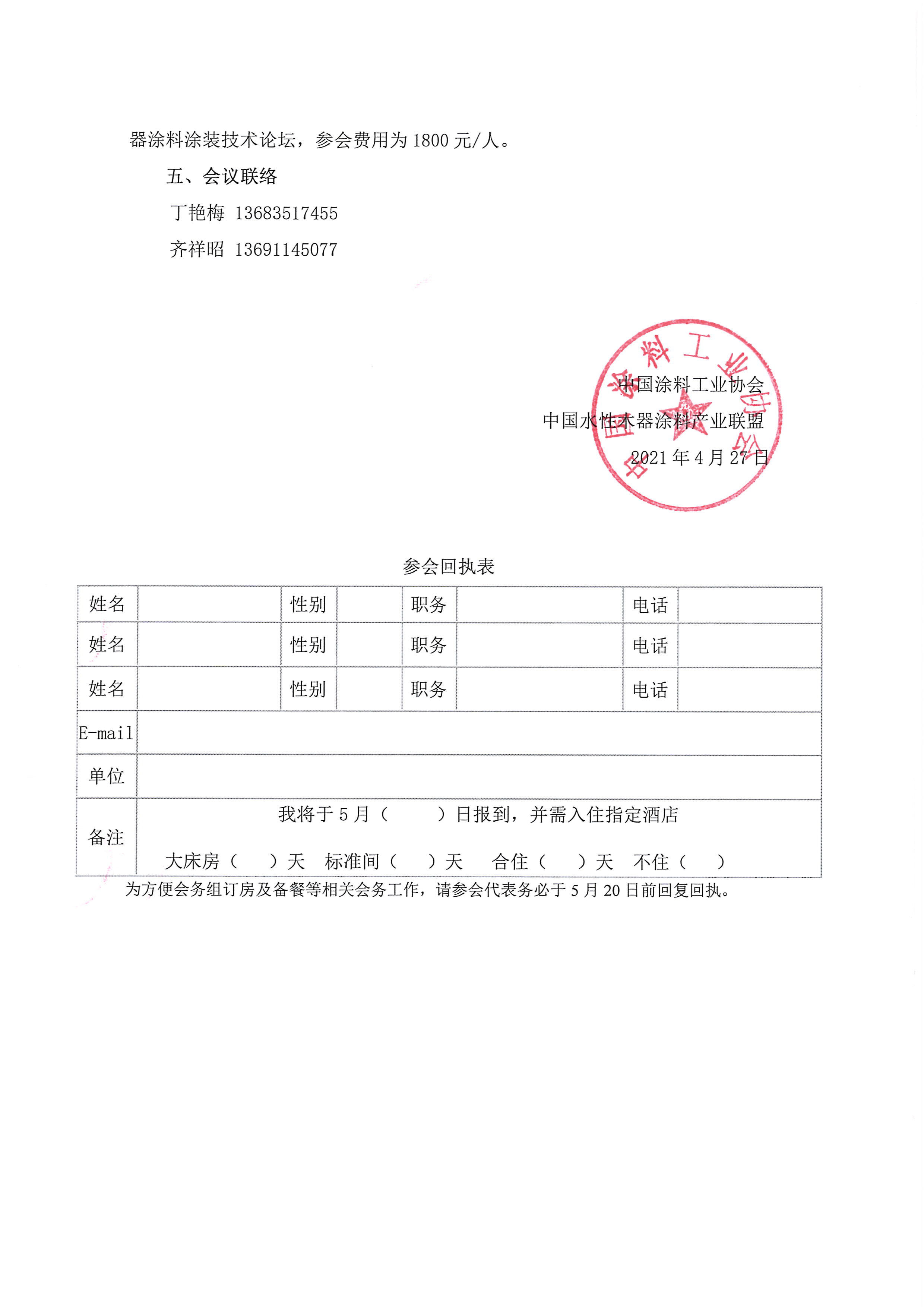 如参加5月27-28日第十四届中国国际水性木器涂料发展研讨会暨绿色木器涂料涂装技术论坛,参会费用为1800元/人。